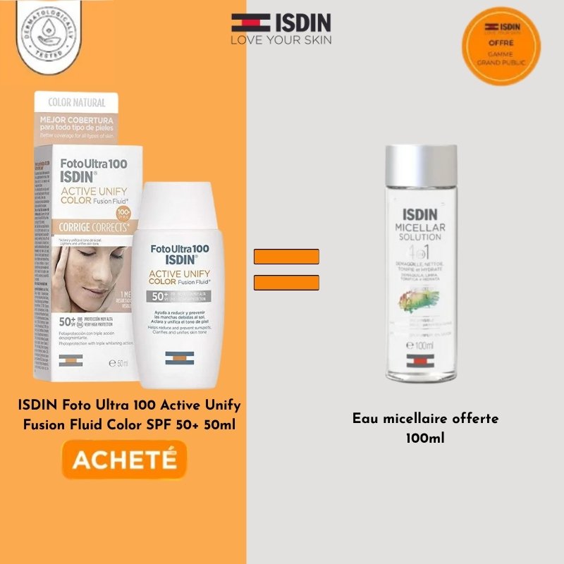 ISDIN Foto Ultra 100 Active Unify Fusion Fluid Color SPF 50+ 50ml + Eau micellaire offerte 100ml