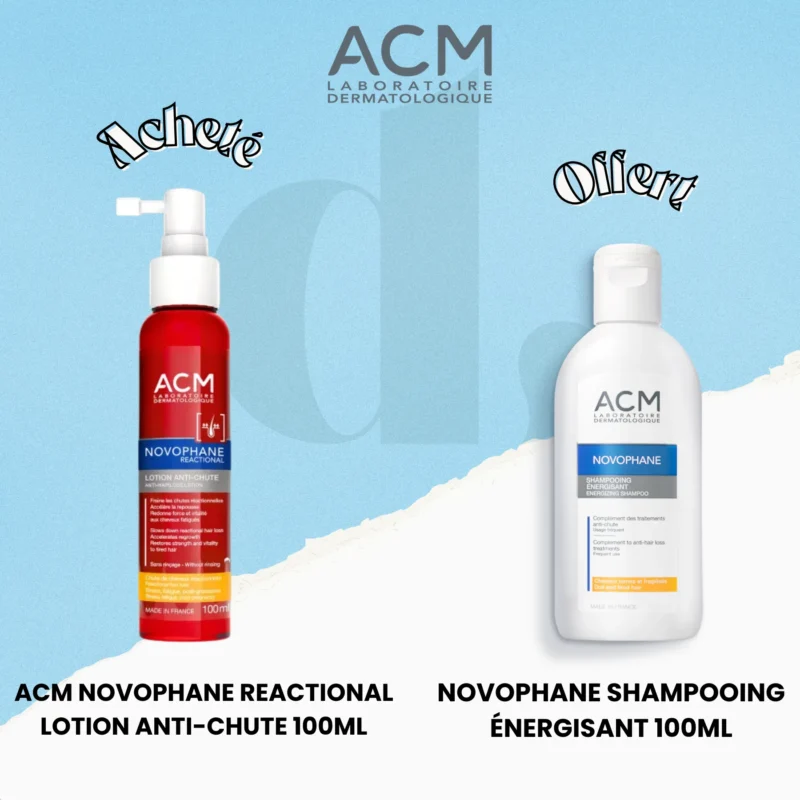 Découvrez ACM Novophane lotion anti-chute  , la solution complète pour lutter contre la chute des cheveux. Ce pack associe une lotion stimulante et un shampooing énergisant pour revitaliser votre cuir chevelu et favoriser une croissance saine.