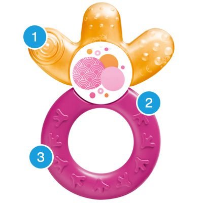 Les premières dents de bébé – une nouvelle aventure. Les designers de MAM ont mis au point un anneau de dentition à la fois cool et rafraîchissant. Entre mordillements, effets rafraîchissant et apaisant, l’anneau Cooler fait oublier aux bébés les désagréments de la poussée dentaire.